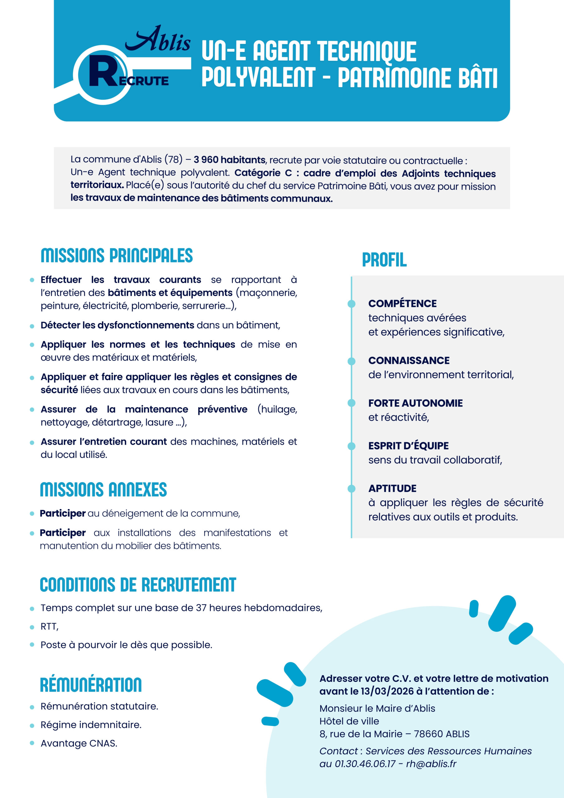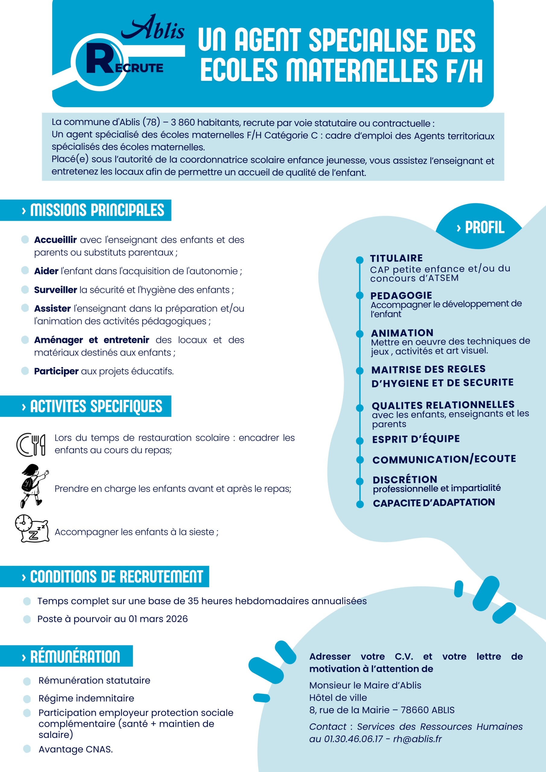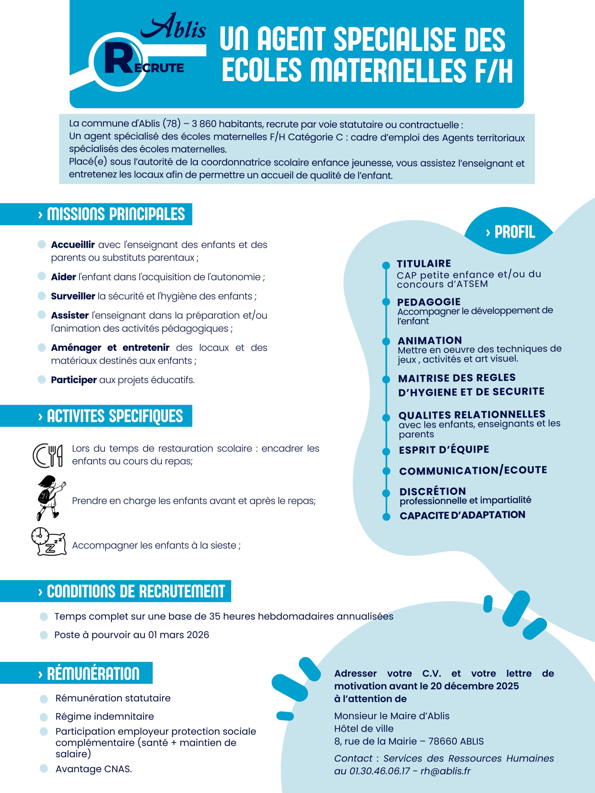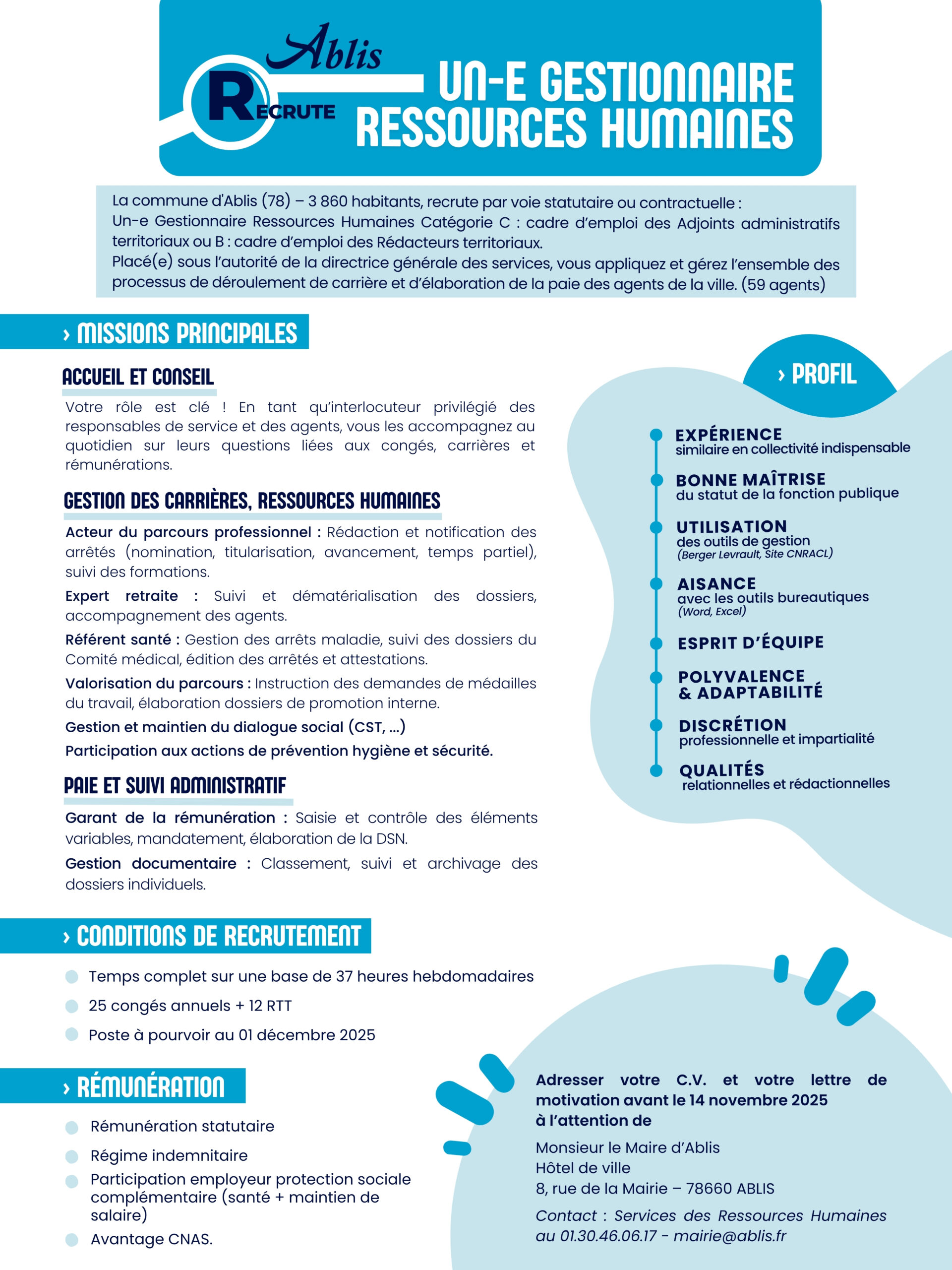 Service des Ressources Humaines : 01 30 46 06 17 – rh@ablis.fr